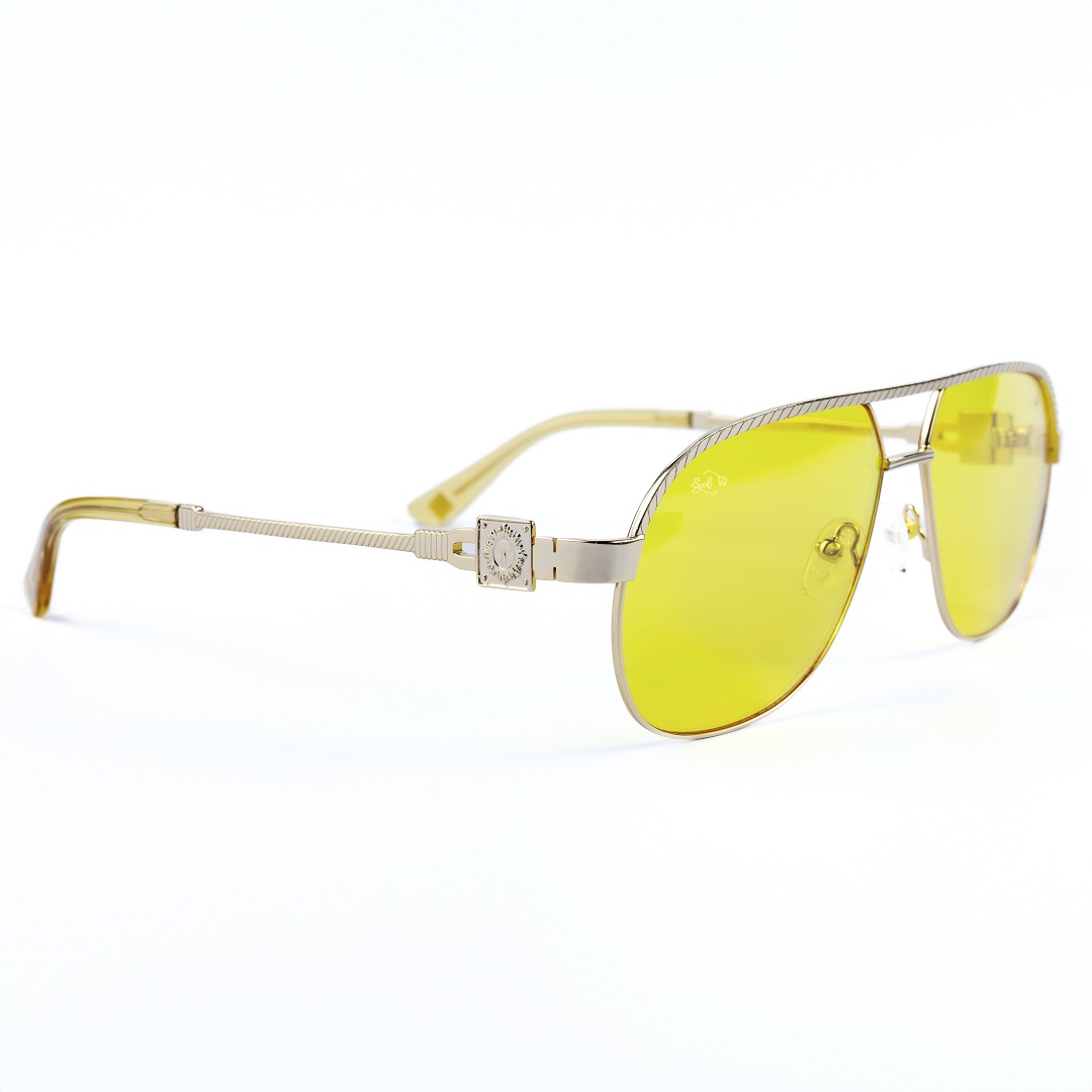 Introducing the Glumo-K Yellow Lense Sunglasses, a perfect fusion of style and protection designed for the modern trendsetter. These sunglasses feature vibrant yellow lenses that make a bold fashion statement, while the sophisticated gold stainless steel frame adds an elegant touch to your look. The striking combination of the yellow lenses and gold frame ensures that you stand out with confidence.